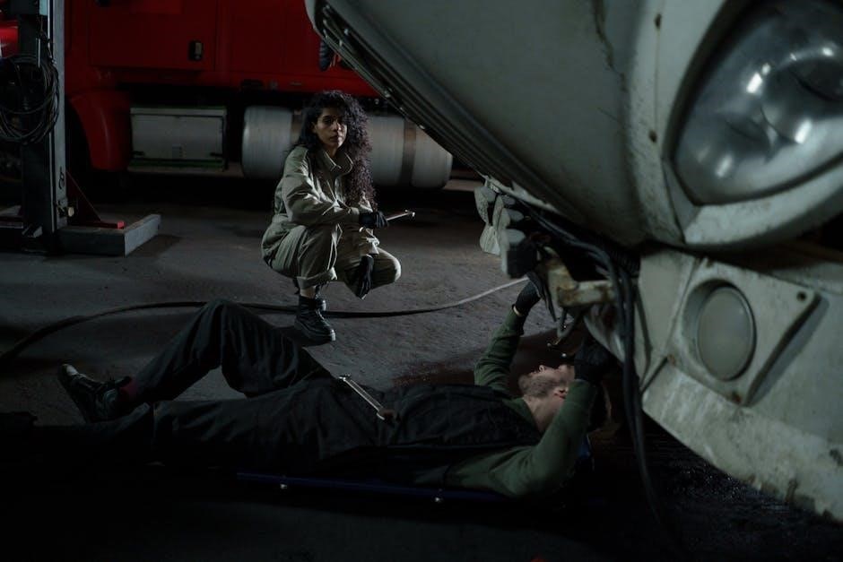 Look for puddles or drips on the ground and examine components for wetness or residue. Address any identified leaks immediately to prevent potential mechanical failures‚ maintain optimal vehicle performance‚ and avoid environmental hazards during transport. Prompt repair is essential for safety.